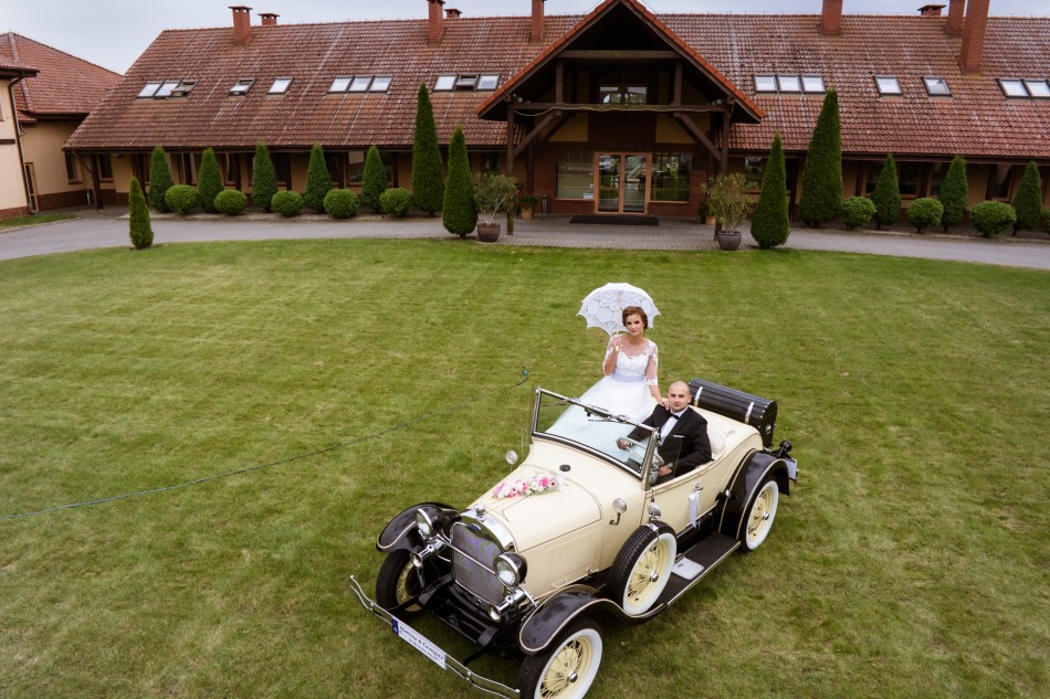 Auto dowozimy Pod dom Pary Młodej i odbieramy spod sali weslenej.